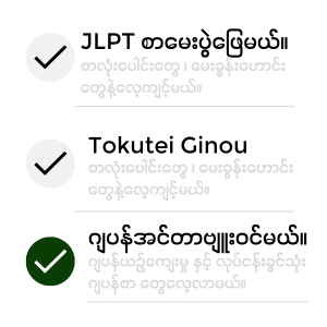 (JLPT၊ ခန်းဂျီး၊ Memonic၊ Tokutei၊ တခြားအထွေထွေများ)